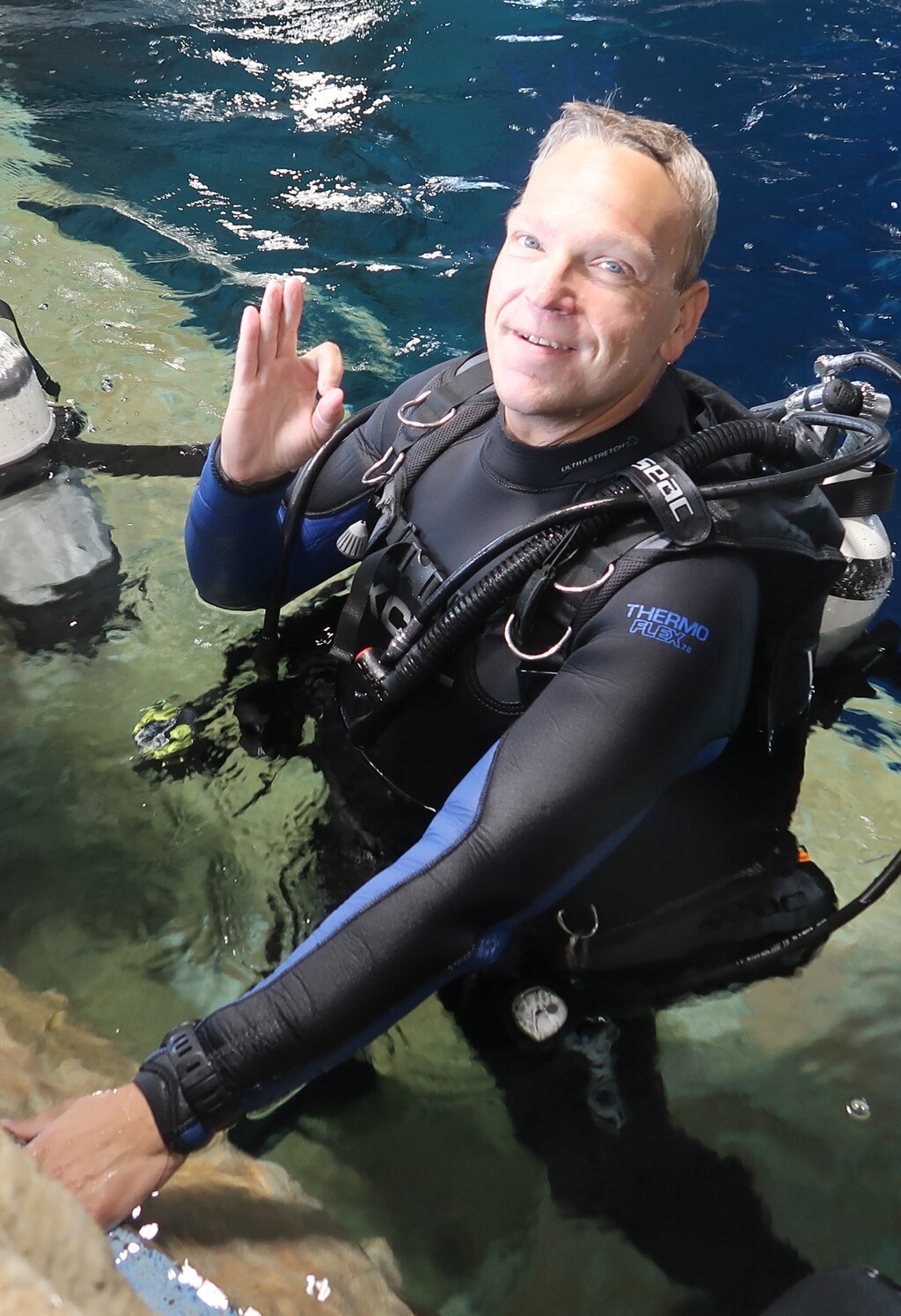 Mit seiner ruhigen und professionellen Art schafft Thomas eine sichere und angenehme Lernatmosphäre – vom ersten Atemzug unter Wasser bis hin zur professionellen Tauchausbildung.